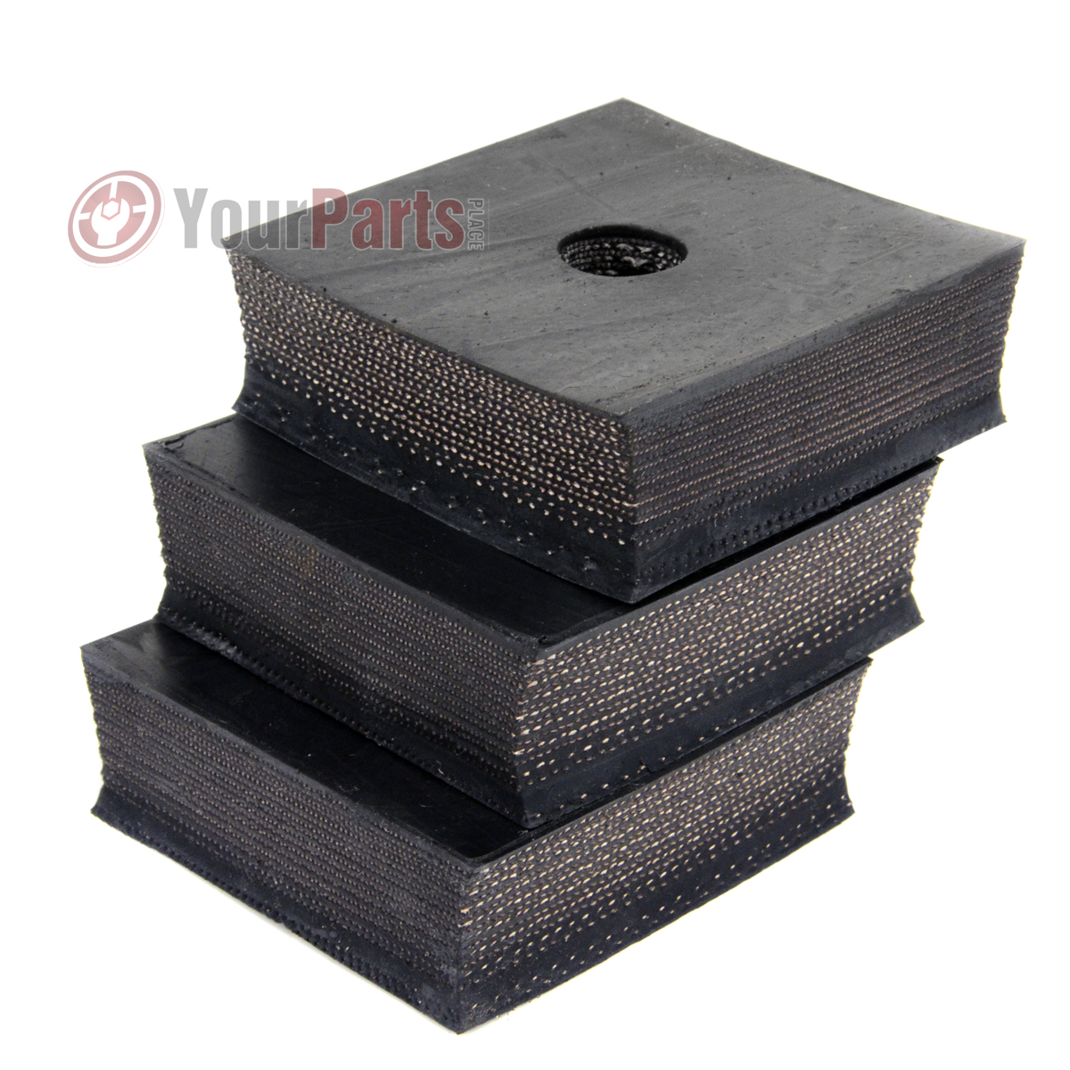 These anti vibration pads are the perfect choice for home or commercial use! Created out of high tensile recycled aircraft tire rubber, these anti vibration pads measure 3" in width, 3" in length, with a total depth of 1". The 1" depth is made from a multi-ply rubber with reinforced nylon webbing, and is designed to withstand some of the harshest agricultural and industrial applications imaginable. Featuring an 8,000 PSI tensile strength, these anti vibration pads are highly tear and abrasion resistant and not only exceed industry standards but the standards of competing anti vibration pads as well. The center of the anti vibration pads contains a pre-drilled 5/8" hole for easy anchoring or securing. These anti vibration pads work well with all sorts of heavy duty equipment, and using them will reduce operating stress, equipment wear, and noise with your machinery. These anti vibration pads are proudly made in the U.S.A. Buyer receives 3 anti vibration pads.