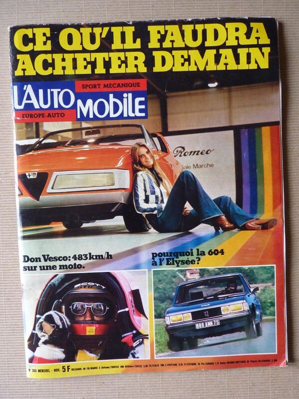 L'Auto-Journal n°353 de Novembre 1975Essai : Peugeot 604 SL, 2664 cm3 136ch Raid, Salons, Autres : Salon de Londres Nouveautés des Salons de Paris Salons de Francfort Sport : Rallye de San Remo, des 1000 Lacs Tour de France Auto 1975 Grand Prix de Long Beach de Formule 5000 Grand Prix d'Italie, des USA 1975 Tyrrell Projet 34 et Lotus 77 JPS 11