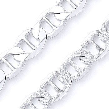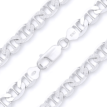 The featured Italian-made 8mm wide chain bracelet is made up of diamond-cut pave detailed mariner links cast in .925 sterling silver finished with a lobster-claw clasp for secure wear.