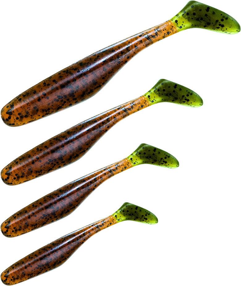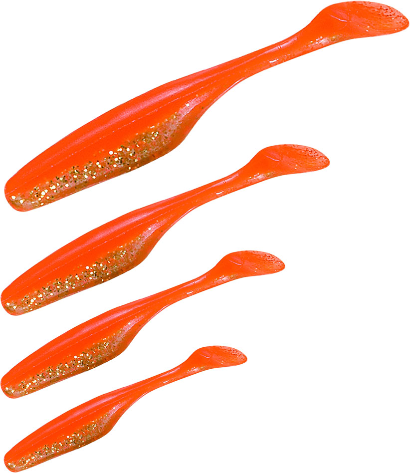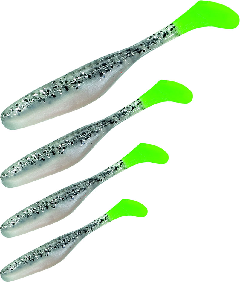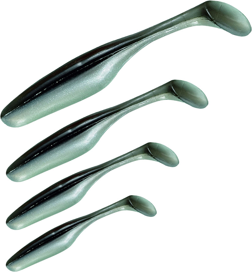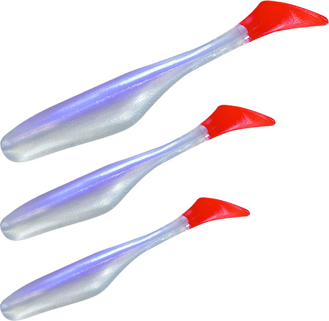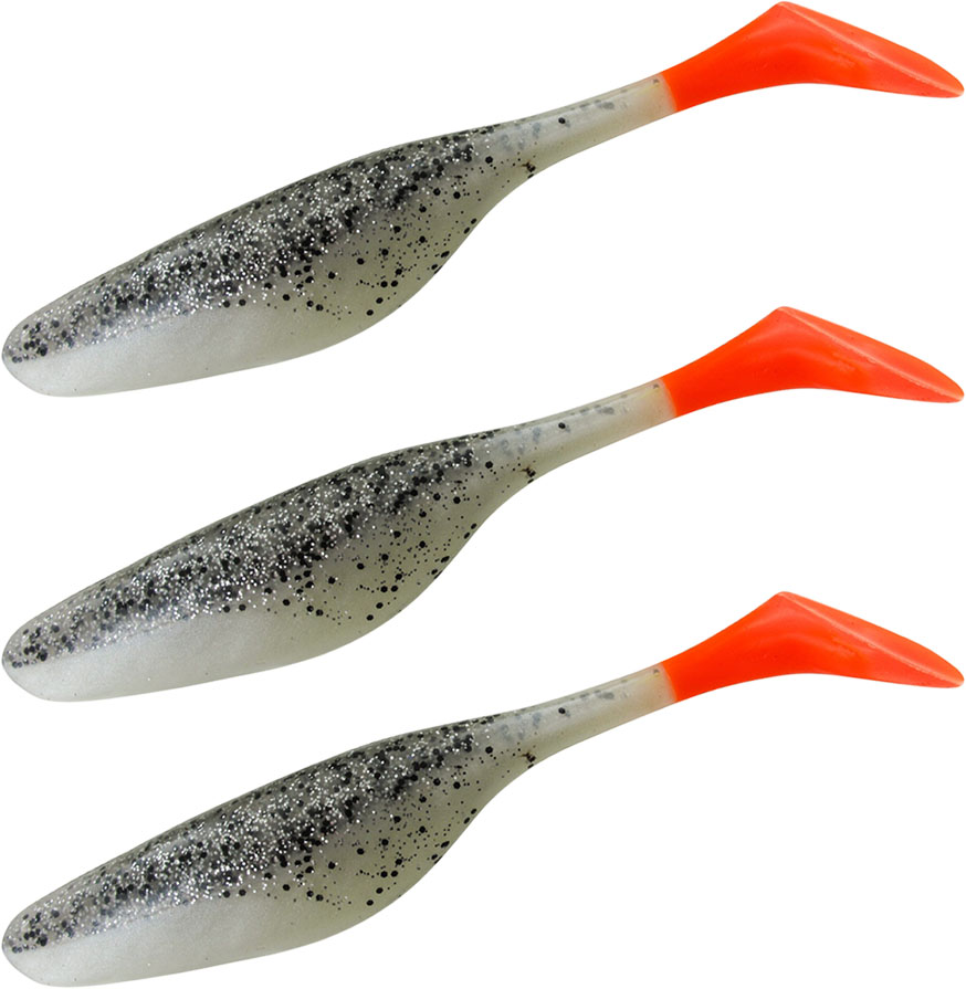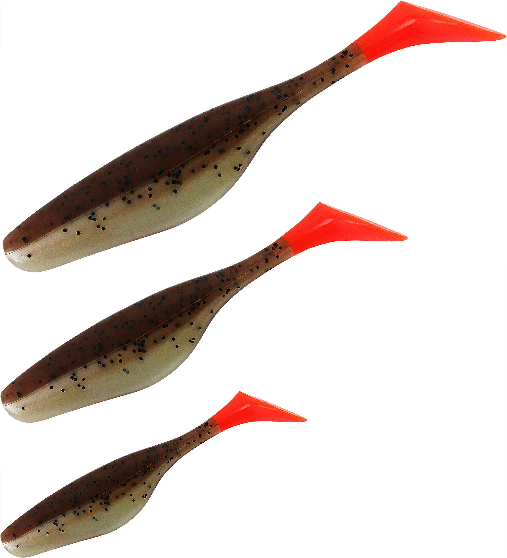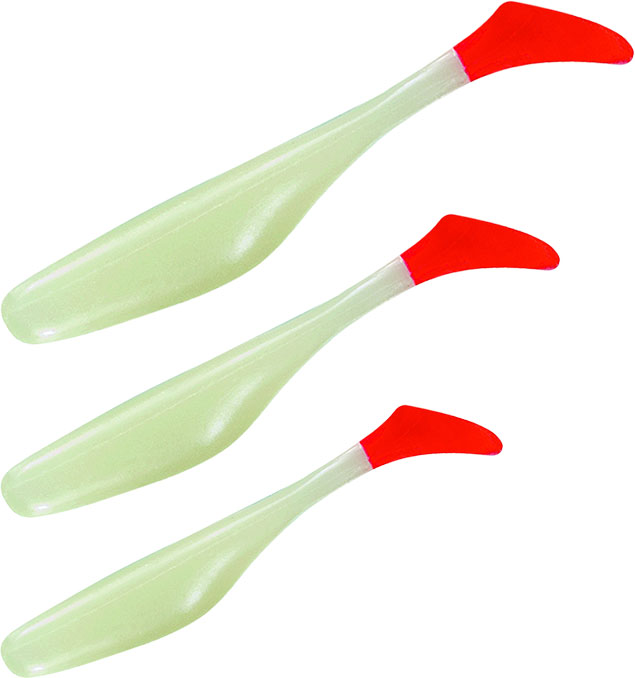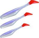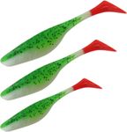 3 fängige Gummifisch Köder in verschiedenen Größen und Farben
