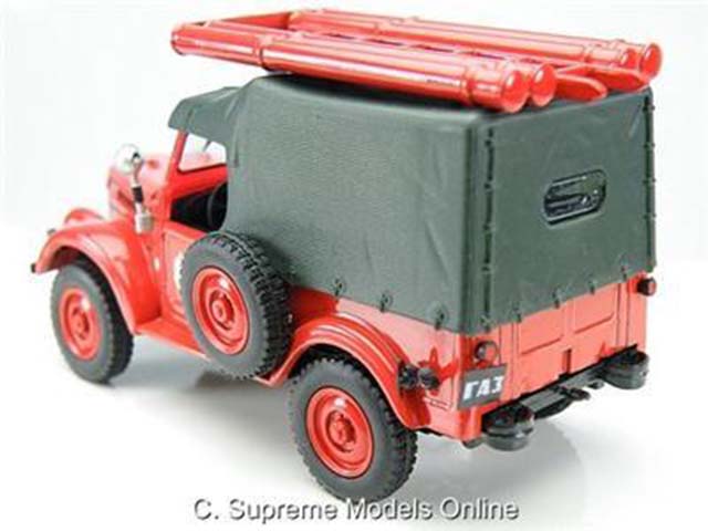 Hello, This is a die cast metal Gaz 69 Fire car. A lovely detailed model which was not a normal shop release. The model is in mint condition and the packaging also is in excellent condition, the packaging consists of a blister pack, model can easily be removed from the packaging and has rolling wheels, this item would make an excellent addition to your collection and a fantastic display piece. Size of the model is 1/43rd scale and measures 9cm (3.5" inches) long. More detailed pictures below.