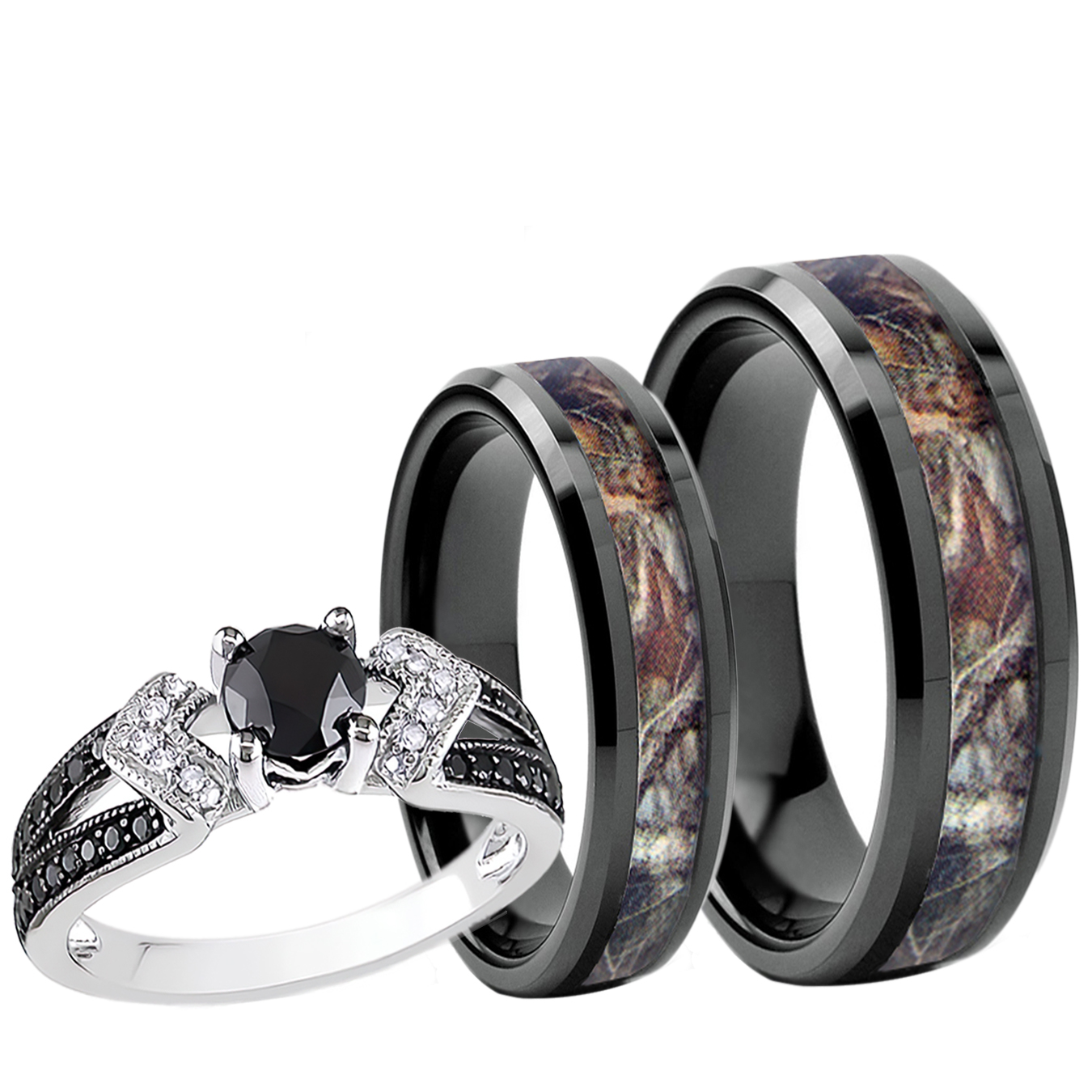 Her [6mm Tungsten Carbide]: Tungsten Carbide rings are 10 times harder than gold and five times harder than titanium. The inner band is slightly rounded for a comfortable fit; add reliability and you've got a ring that really delivers. The camo design is professionally inlayed and protected by a clear epoxy encasement. This tungsten carbide ring is finalized in a premium polish.
