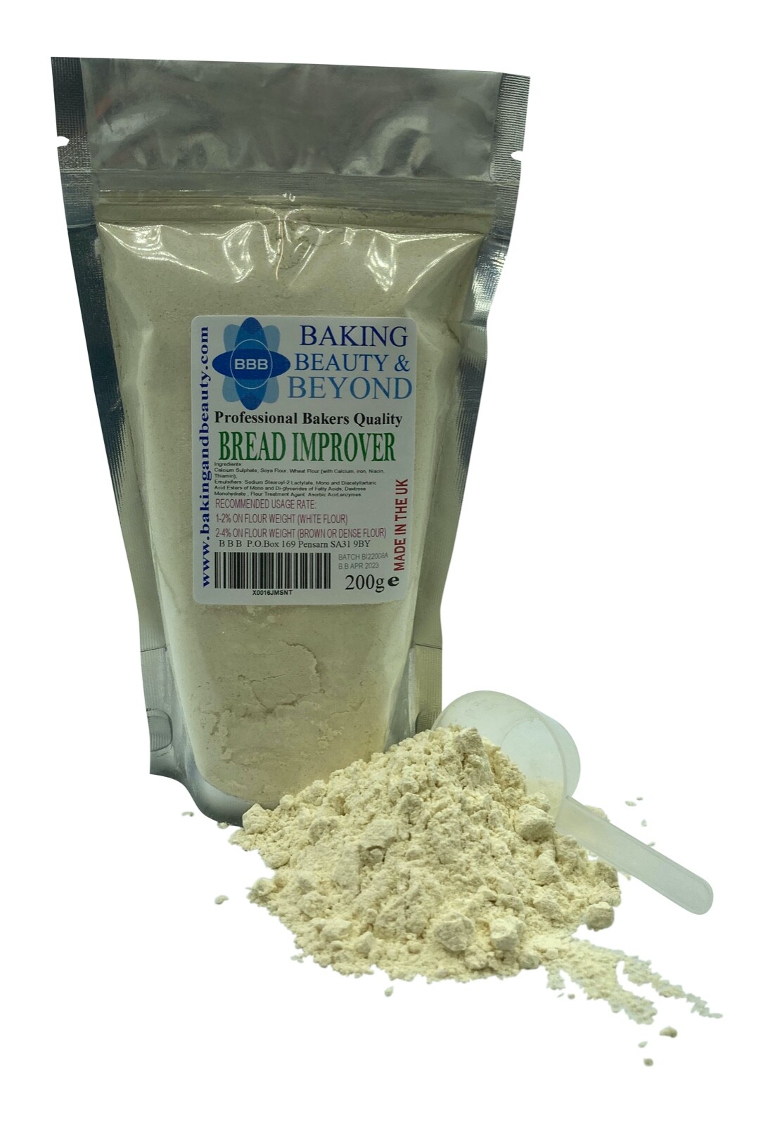 - 1 to 2% of bread improver per 100g of flour or 5 to 10g of bread improver per 500g of flour