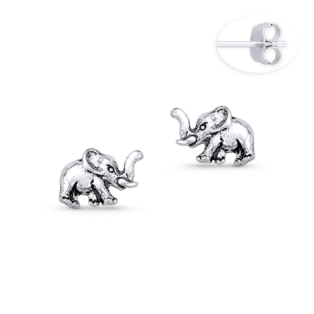 The featured earrings are cast in .925 sterling silver and showcase oxidized-finish elephant designs finished with push-back posts & butterfly clasps for secure wear.