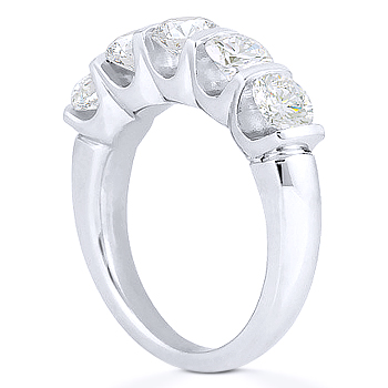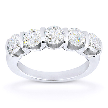 Round Cut Charles & Colvard Forever ONE 5-Stone Shared Bar-Prong Wedding Ring in 14k White Gold