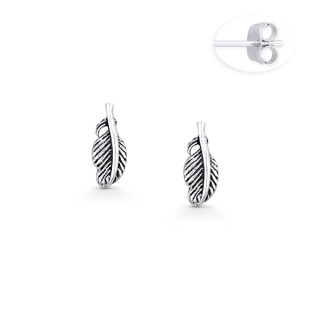 The featured earrings are cast in oxidized-finish .925 sterling silver and showcase bird's feather designs finished with push-back posts & butterfly clasps for secure wear.
