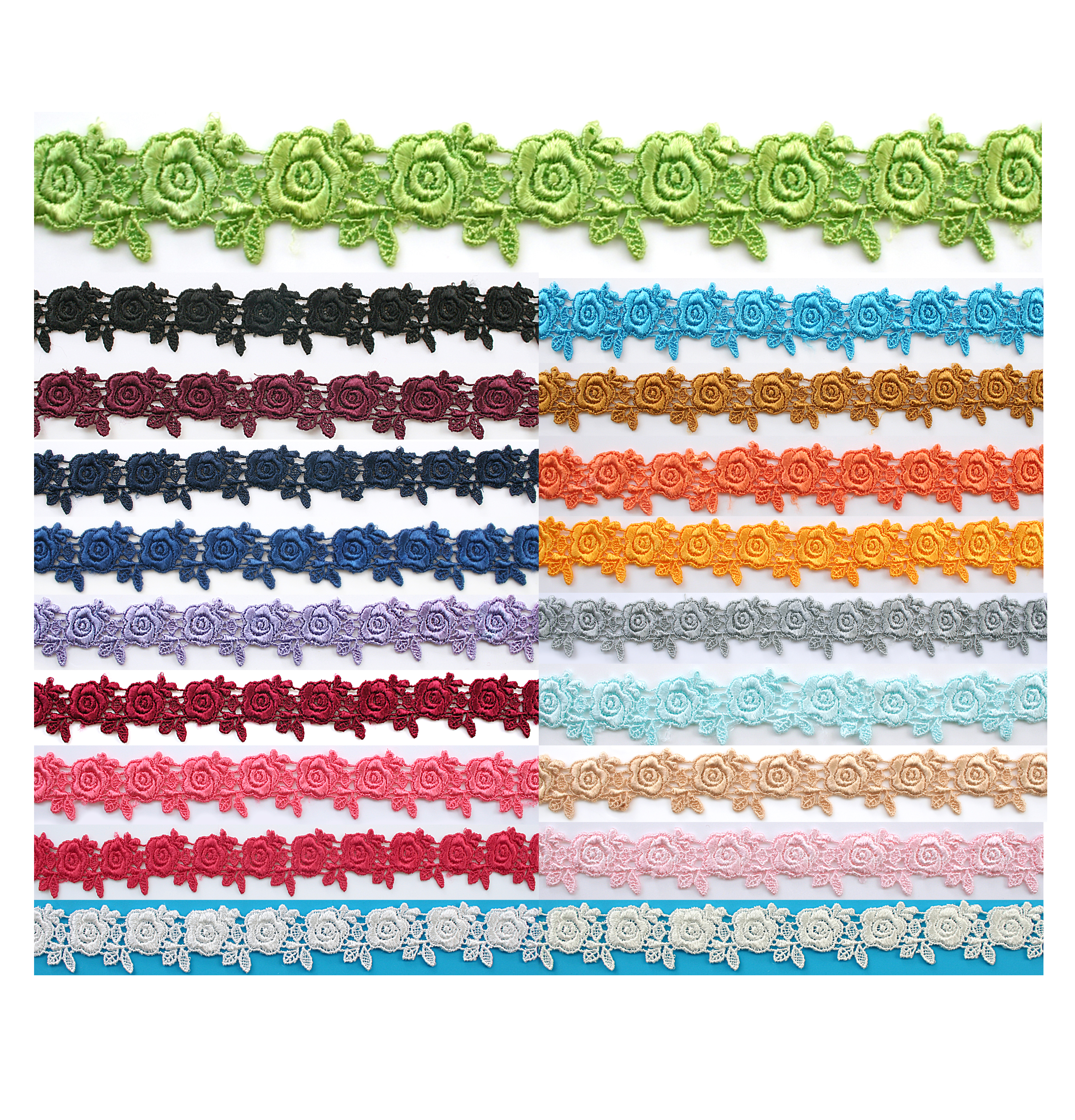 1" Color Embroidered Ribbon or Floral Flower Venice Lace Trim DIY