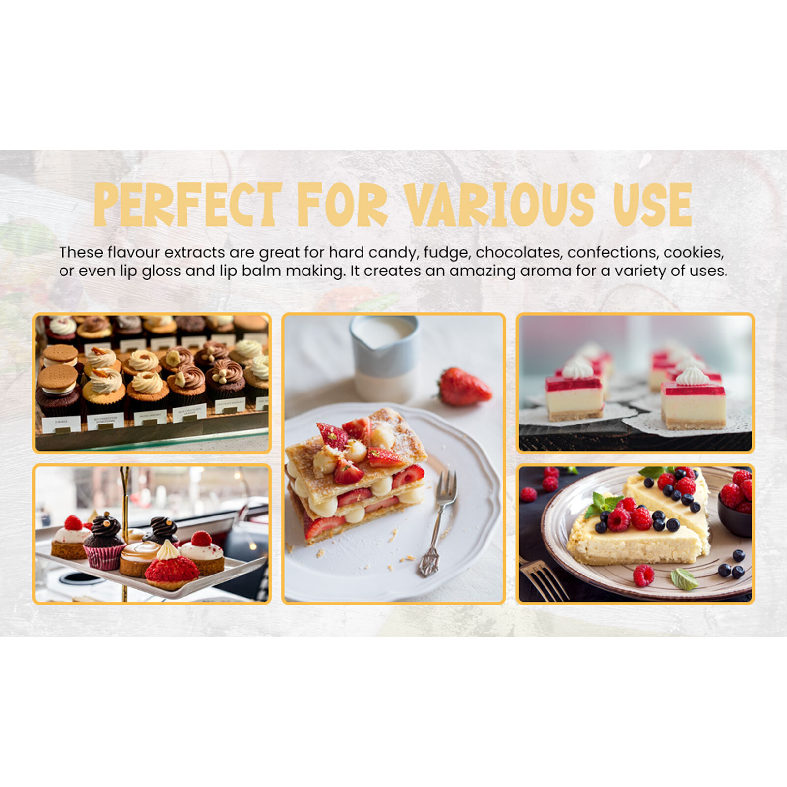 ๐๐๐๐๐๐ ๐๐๐๐: These flavour extracts are great for hard candy, fudge, chocolates, confections, cookies, beverages, or even lip gloss and lip balm making. It creates an amazing aroma for a variety of uses.