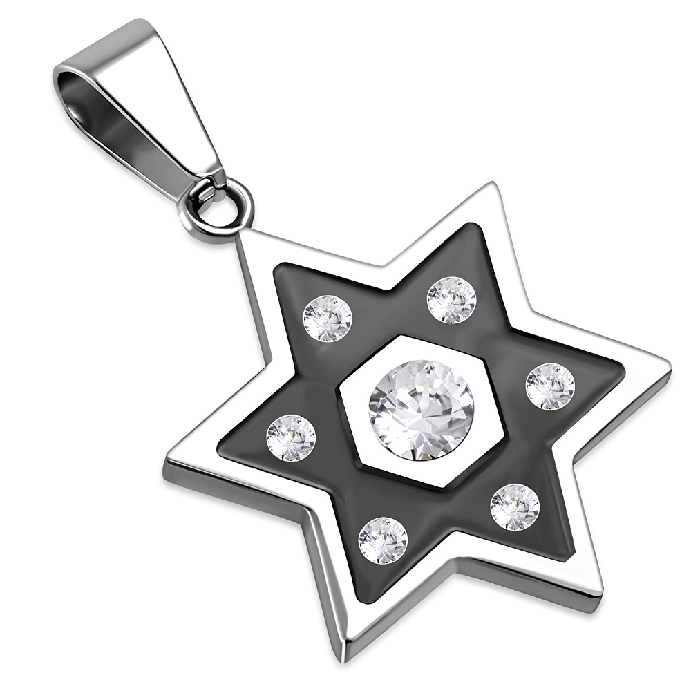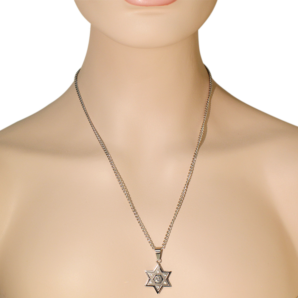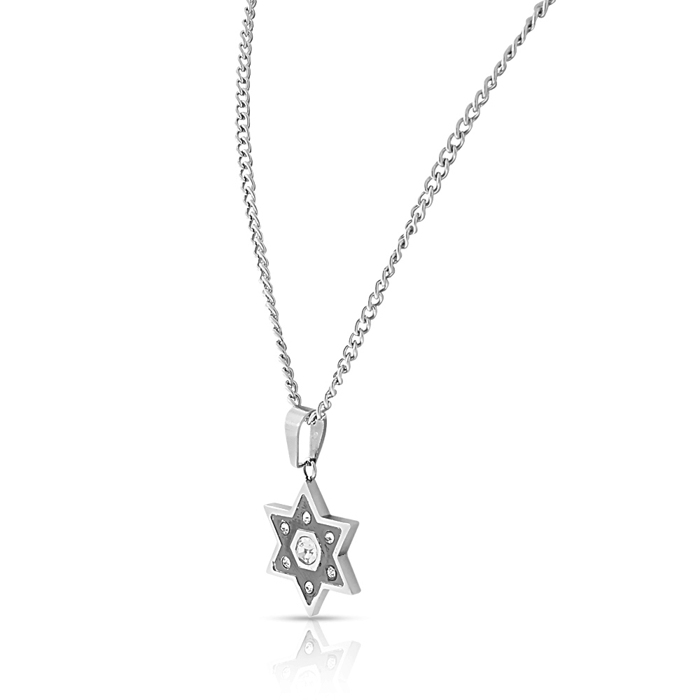 Feature 1: | RELIGIOUS STYLE, a 1.10" by 0.80" Star of David pendant with a subtle touch of clear cz gemstones for a bejeweled look |