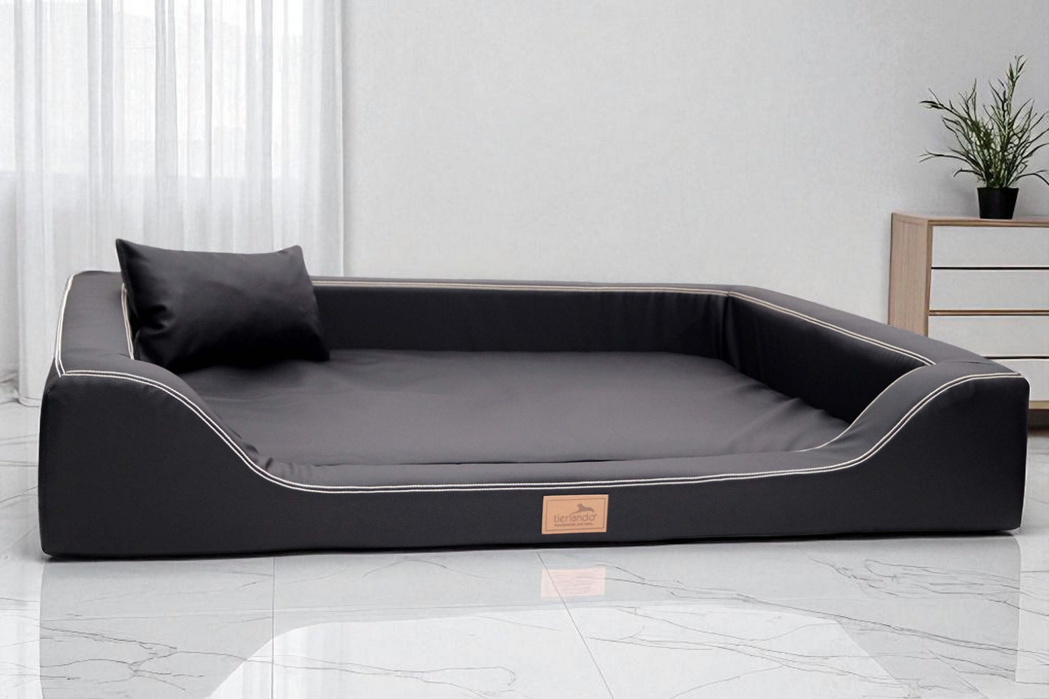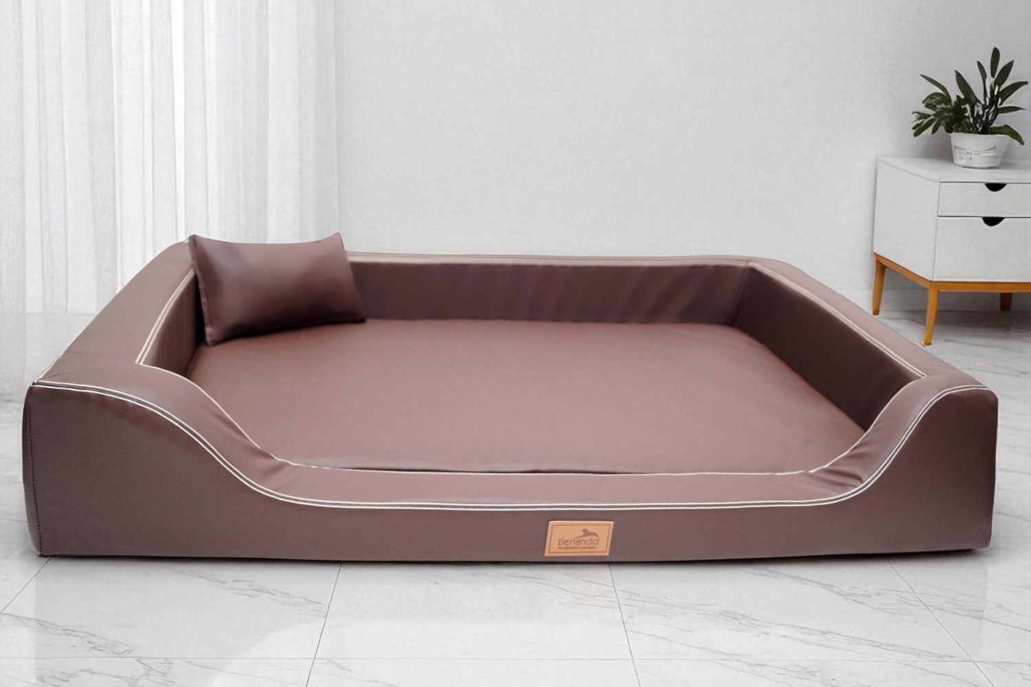 Das orthopädische Hundebett MELODY bietet Luxus und Komfort im edlen Sofa-Design. Handgefertigt und veredelt, überzeugt es durch eine Ultra-Latex-Matratze, bezogen mit weichem, pflegeleichtem Kunstleder in bester Qualität, das Punktelastizität und Formstabilität garantiert. Hundehaare und Schmutz lassen sich mühelos entfernen, und es fördert dank seiner Materialwahl einen gesunden, erholsamen Schlaf – ideal für Hunde mit Gelenk- oder Wirbelsäulenproblemen. Ein stilvolles, pflegeleichtes Meisterwerk für anspruchsvolle Vierbeiner.