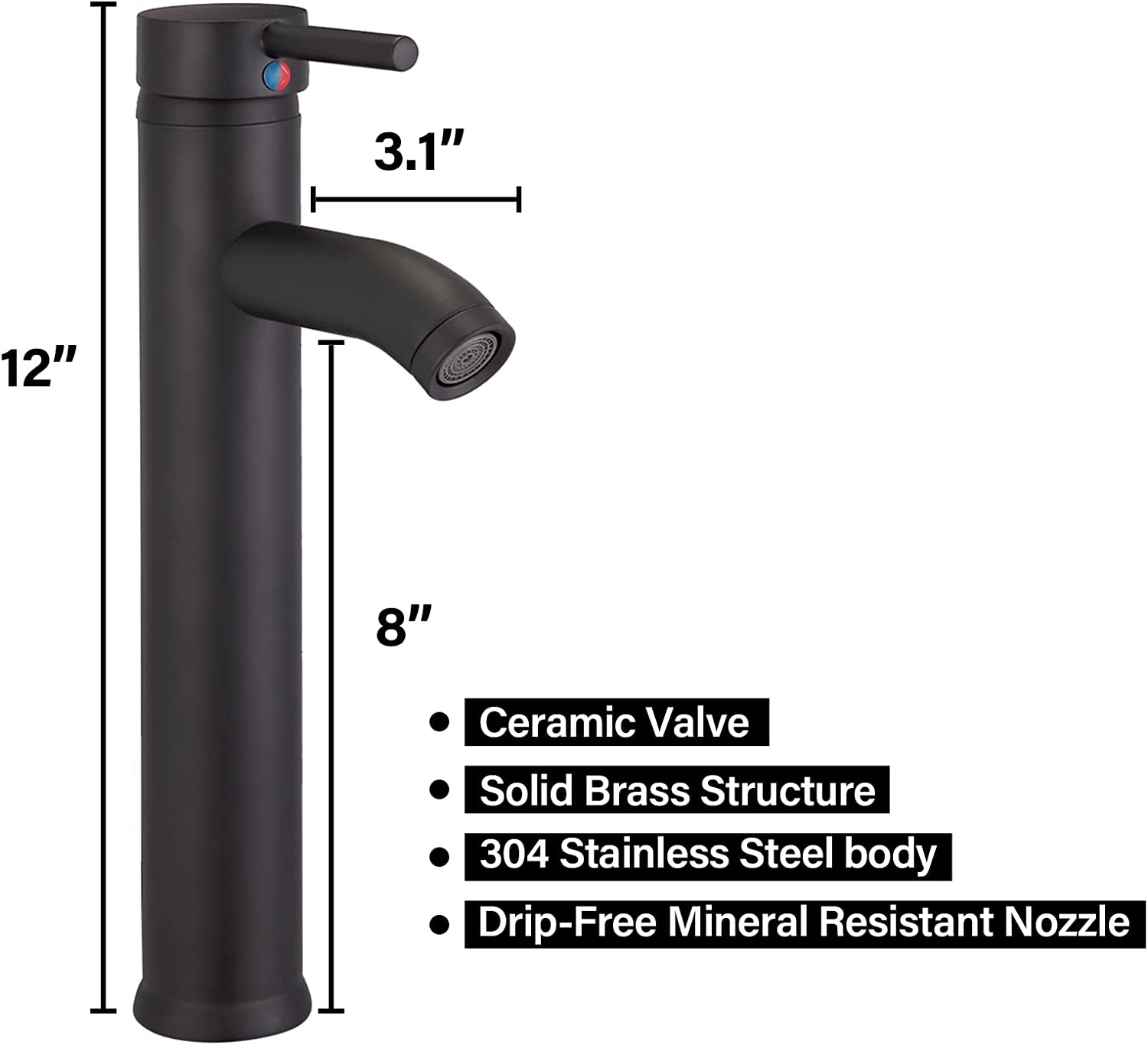 - Designed for above counter installation with standard US plumbing connections (1/2'')