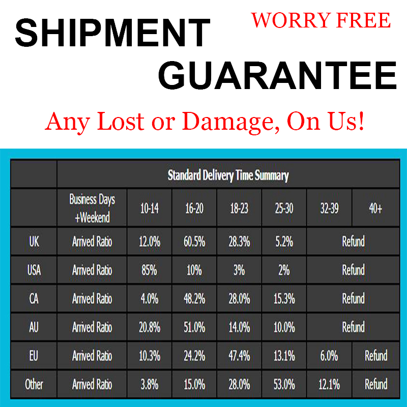 We strive our best to provide you the most reliable, affordable way of shipping service. But sometimes international delivery is highly depended on the courier company and local customs/duties. If you do not receive your item on time, please contact us immediately for further assistance. Thank you for your understanding.