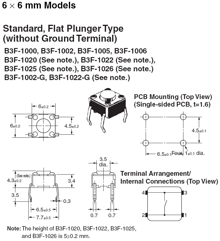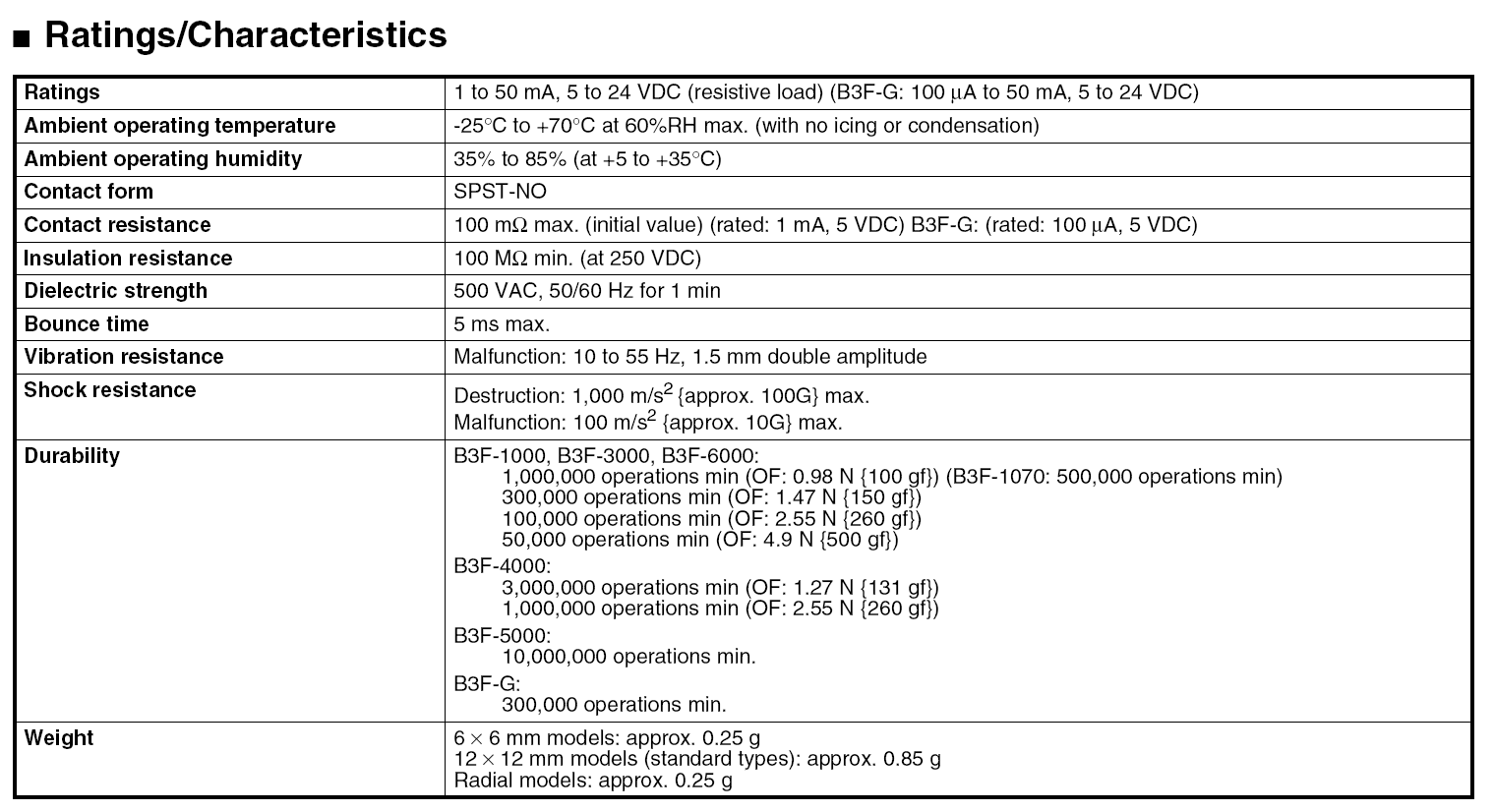 Tactile Switches Omron B3F1000 series (6 x 6 mm)