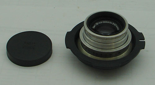 This is 50mm / F=2.8 German CZJ lens with 14 blades, s/n 3374960