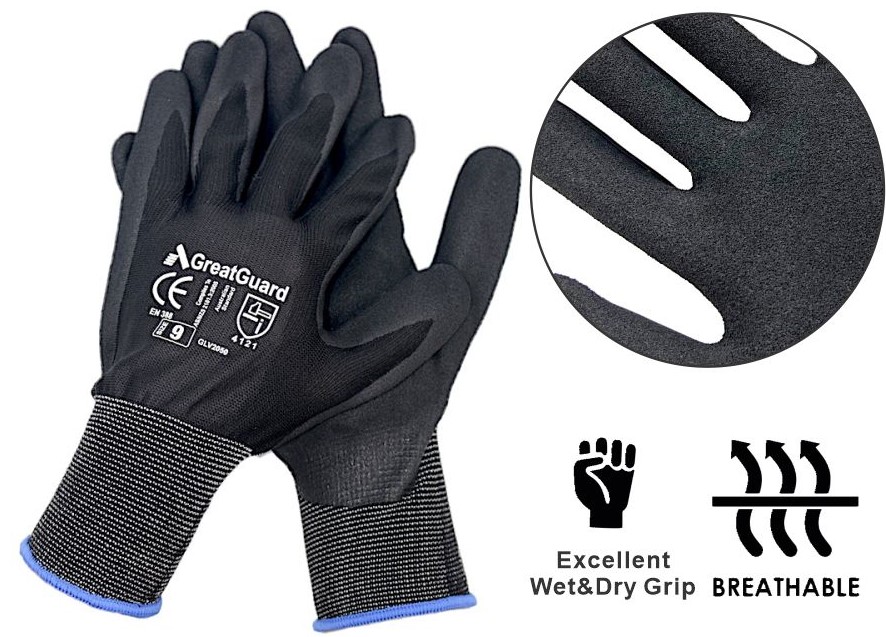Hand protection can require work gloves made from synthetics, nitrile, latex, PVC, cotton, leather and combinations of these. GreatGuard can meet any requirement.