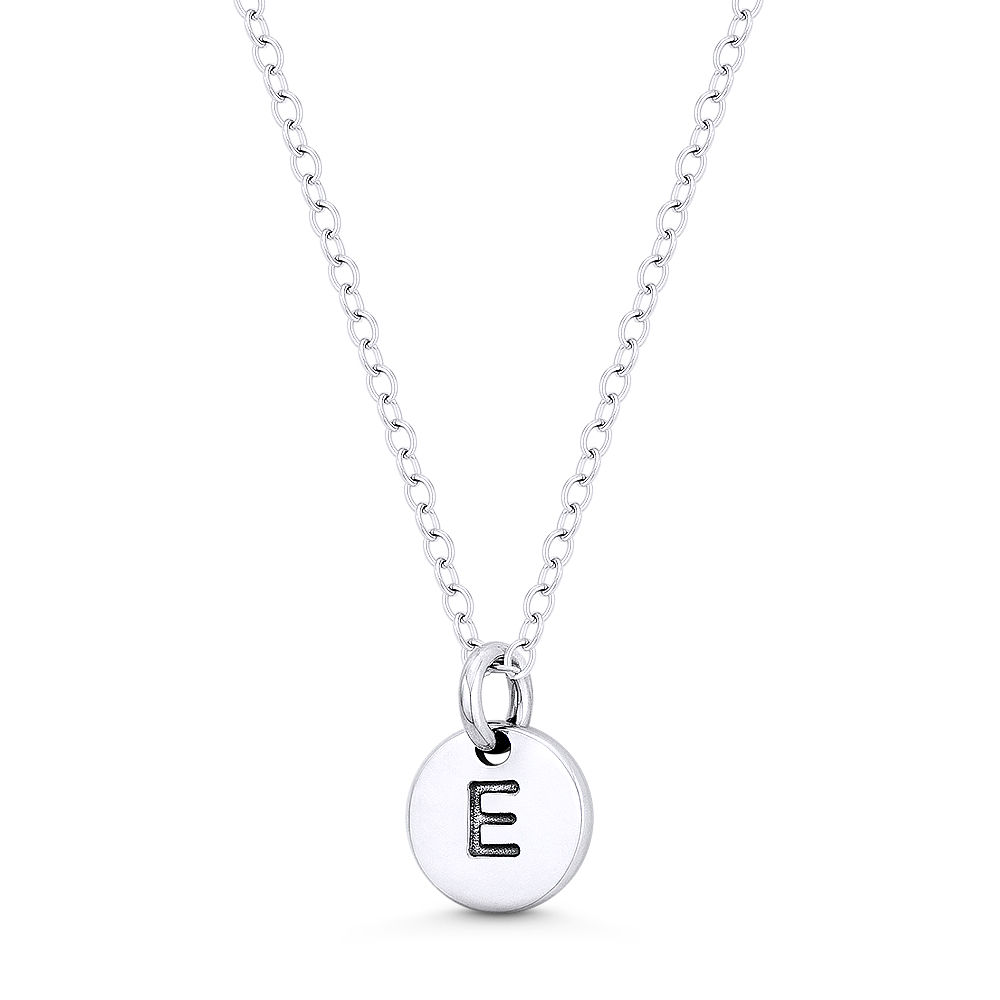 The featured charm is cast in .925 sterling silver and showcases an 8mm (0.3") round flat disc detailed with an initial "E" engraving. The disc is then finished with a small ring bail that can accommodate thin chains so it can be worn as a pendant or as an additional charm for your bracelets, necklaces, or other accessories.