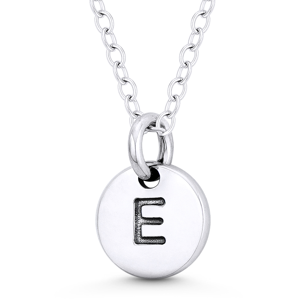 Initial Letter "E" Engraved Tiny 11x8mm (0.4"x0.3") Circle Pendant in .925 Sterling Silver