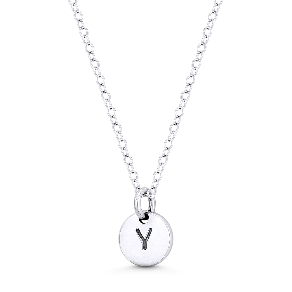 The featured charm is cast in .925 sterling silver and showcases an 8mm (0.3") round flat disc detailed with an initial "Y" engraving. The disc is then finished with a small ring bail that can accommodate thin chains so it can be worn as a pendant or as an additional charm for your bracelets, necklaces, or other accessories.