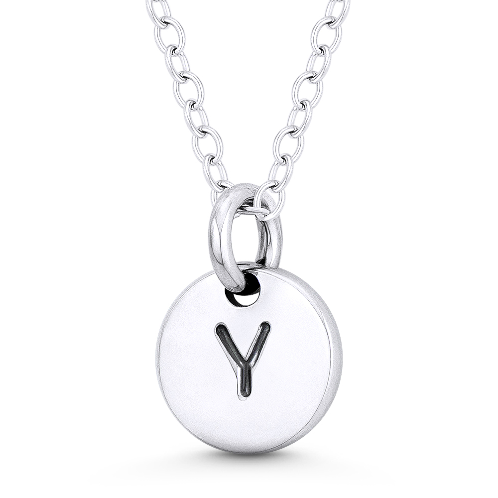 Initial Letter "Y" Engraved Tiny 11x8mm (0.4"x0.3") Circle Pendant in .925 Sterling Silver