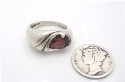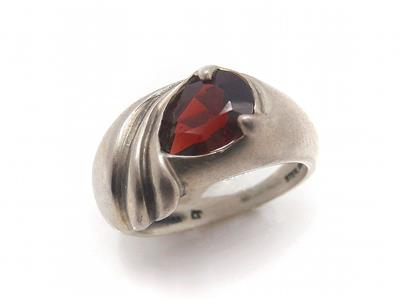 Presenting a beautifully handcrafted ring from Kabana featuring a stunning 9.3 x 7.3mm - 2.0ct. Teardrop Natural Pyrope Garnet, prong set in solid sterling silver with a gently curving nautilus design; making this a flattering unisex style.