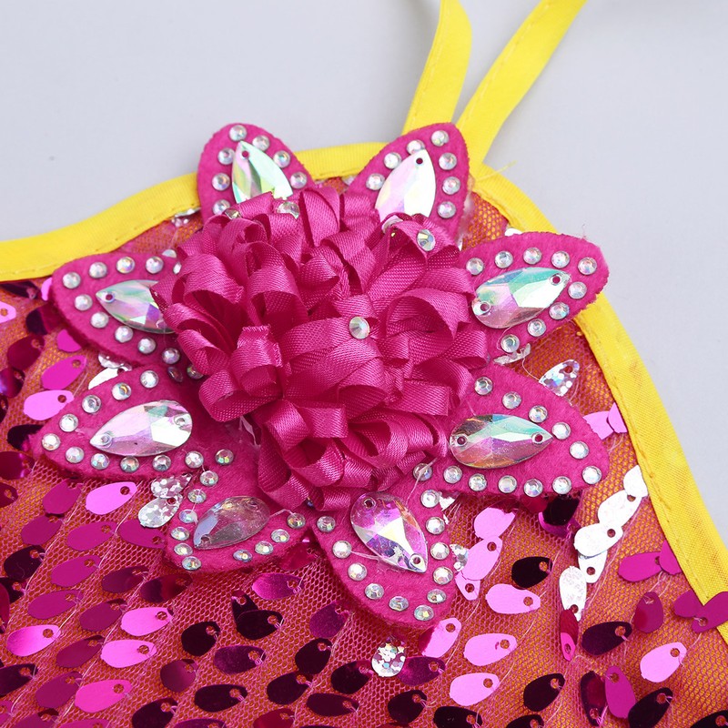 Dance costume is made of polyester, mesh and sequins material, hand wash.