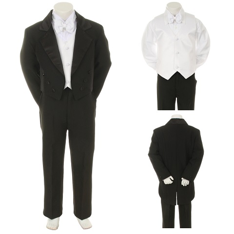 Boys White and Black Formal Party Wedding Vest Set Suits Tuxedo New Born Baby Teen
