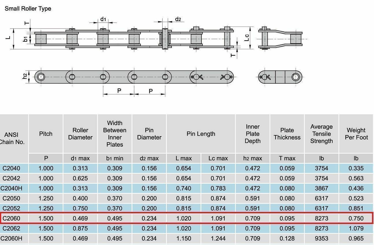 #C2060SS Stainless Steel Conveyor Roller Chain 10 Feet with 1 Connecting Link