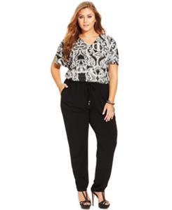 NEW Style & Co Black White Print V-Neck Short Sleeve Jumpsuit Women's Plus 0X NWT