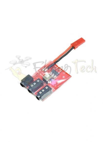 This simple 2 Channel Video Switcher allows you to connect two video inputs to a single monitor or goggles and switch between their video feeds at the push of a button.