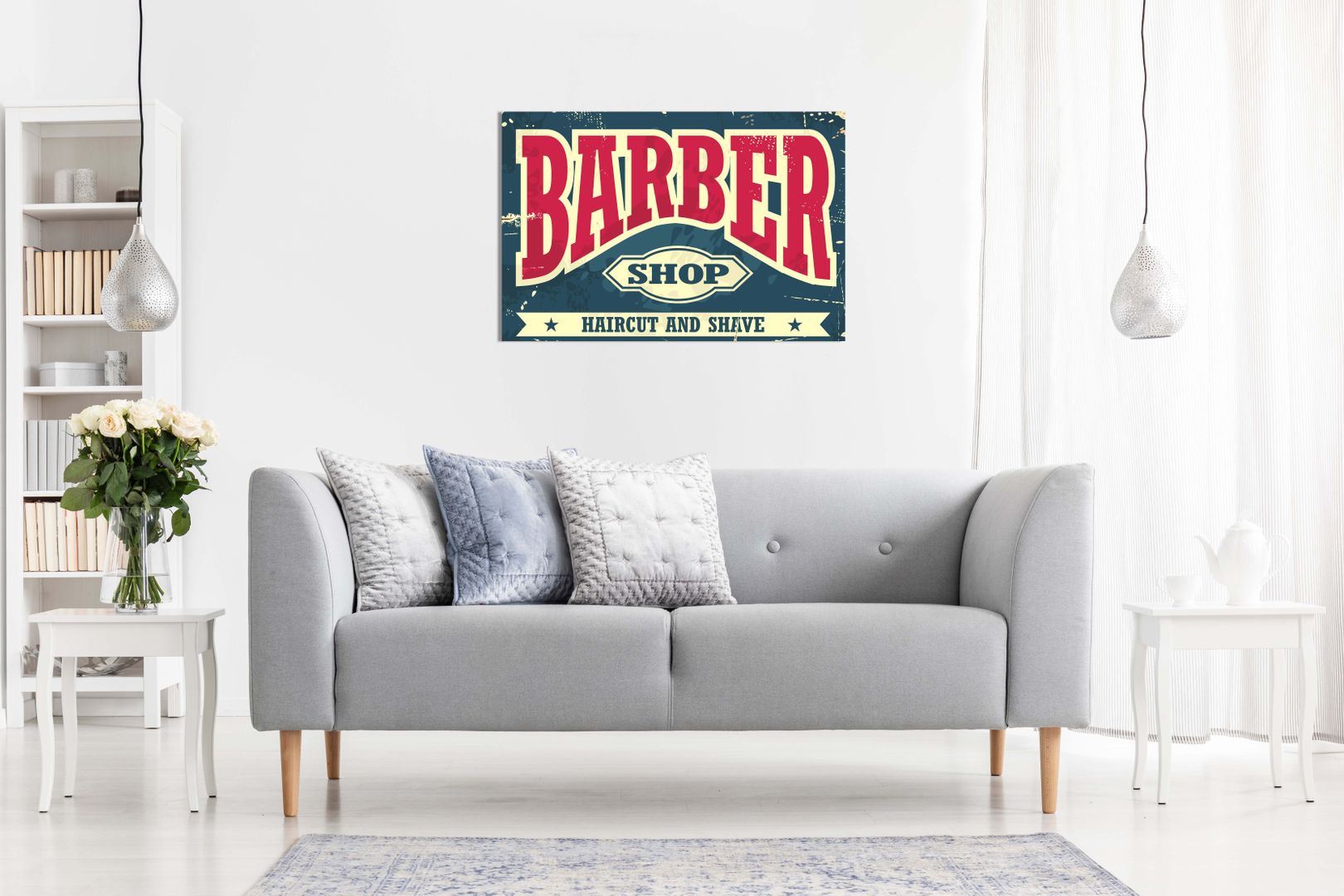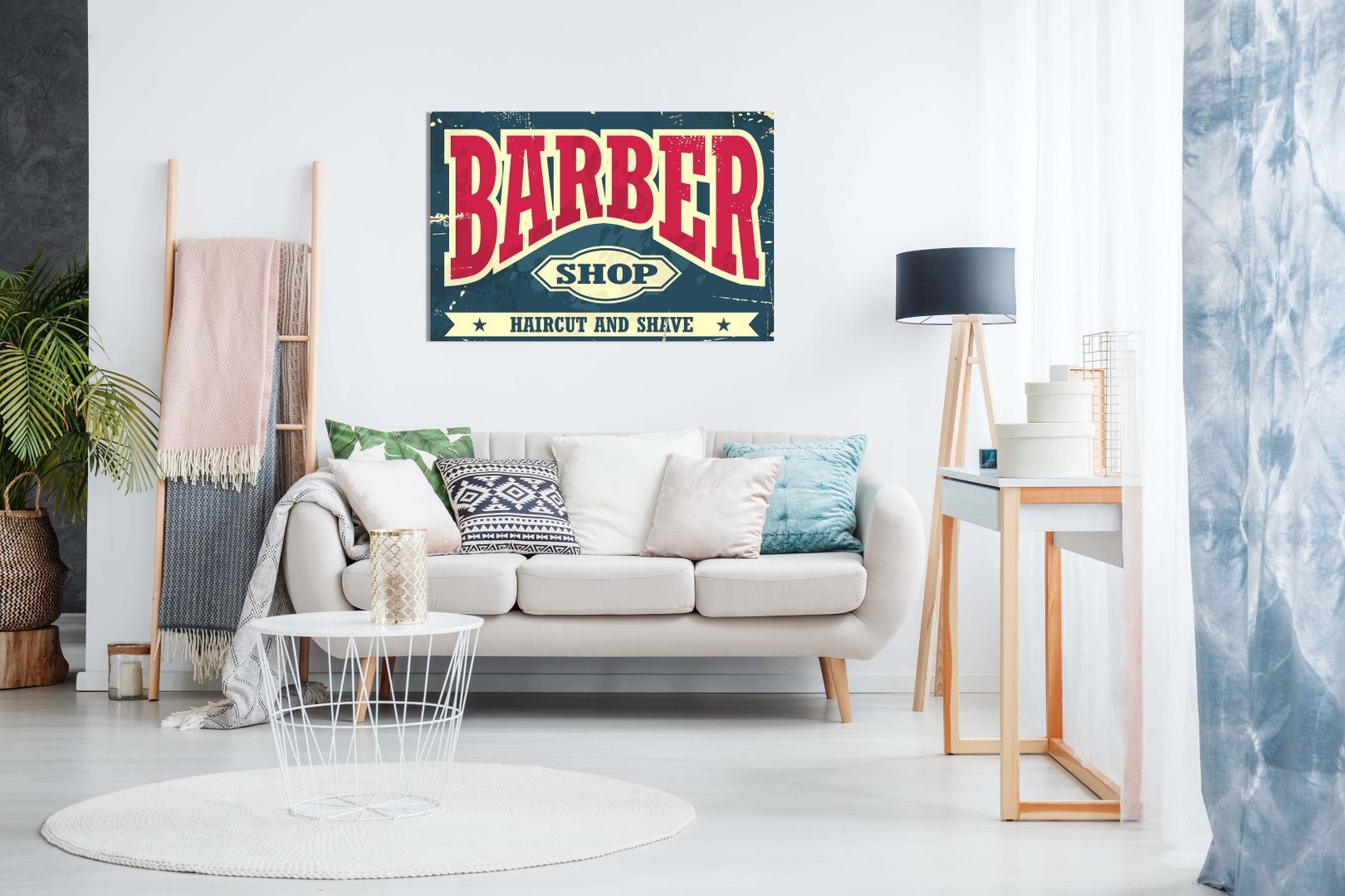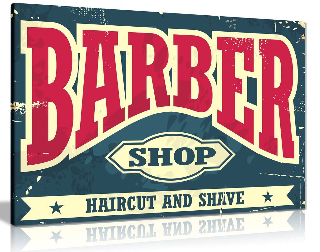 Barber Shop Decor Sign Haircut & Shave Canvas Wall Art Picture Print