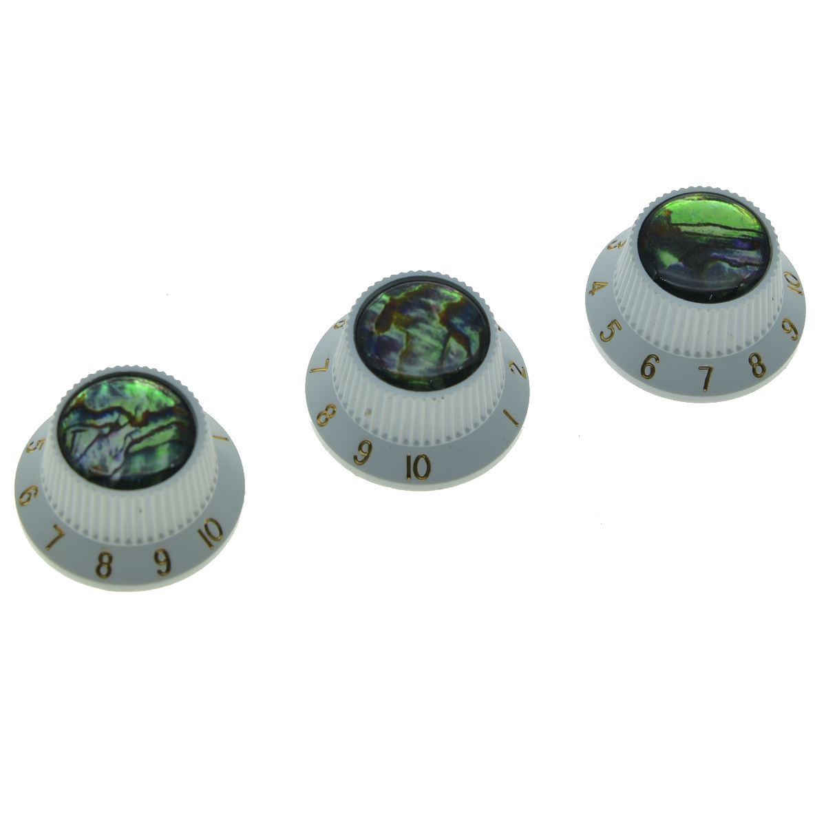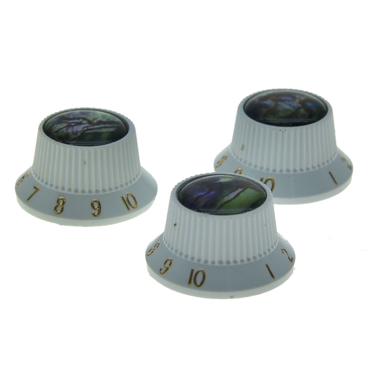 |  |  |  |  | Set of 3 Plastic Push on Fit Abalone Top ST Strat Guitar Knobs Bass Knobs White