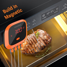 This food thermometer has 4 probes, It is convenient to monitor temperatures of more than one piece of meat and ambient temperature with 3 meat temperature probes and 1 ambient temperature probe at the same time. The temperature range of short-time measurement is 0°C-300°C/32℉-572℉ and the range of continuous monitoring is 0°C-250°C/32℉-482℉.