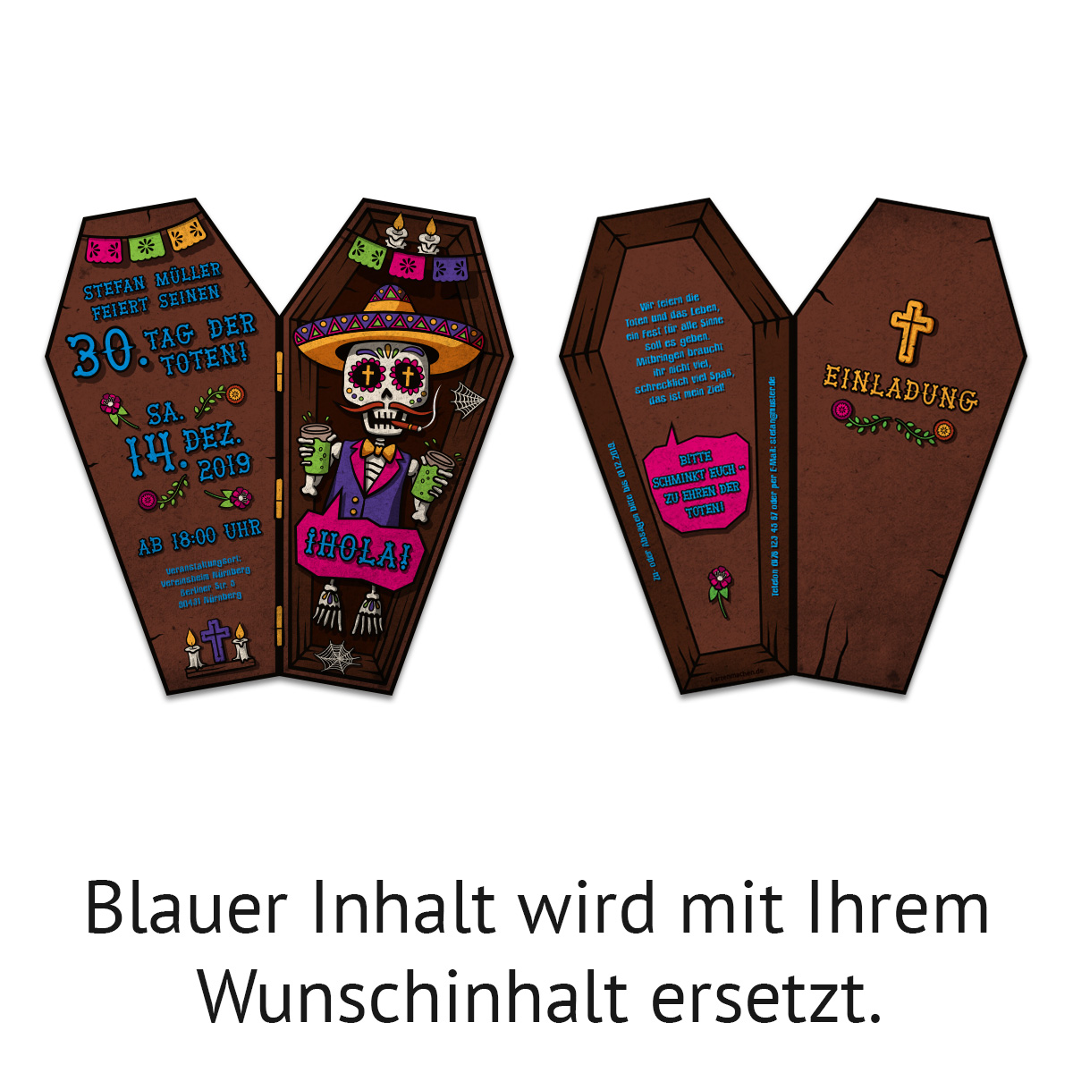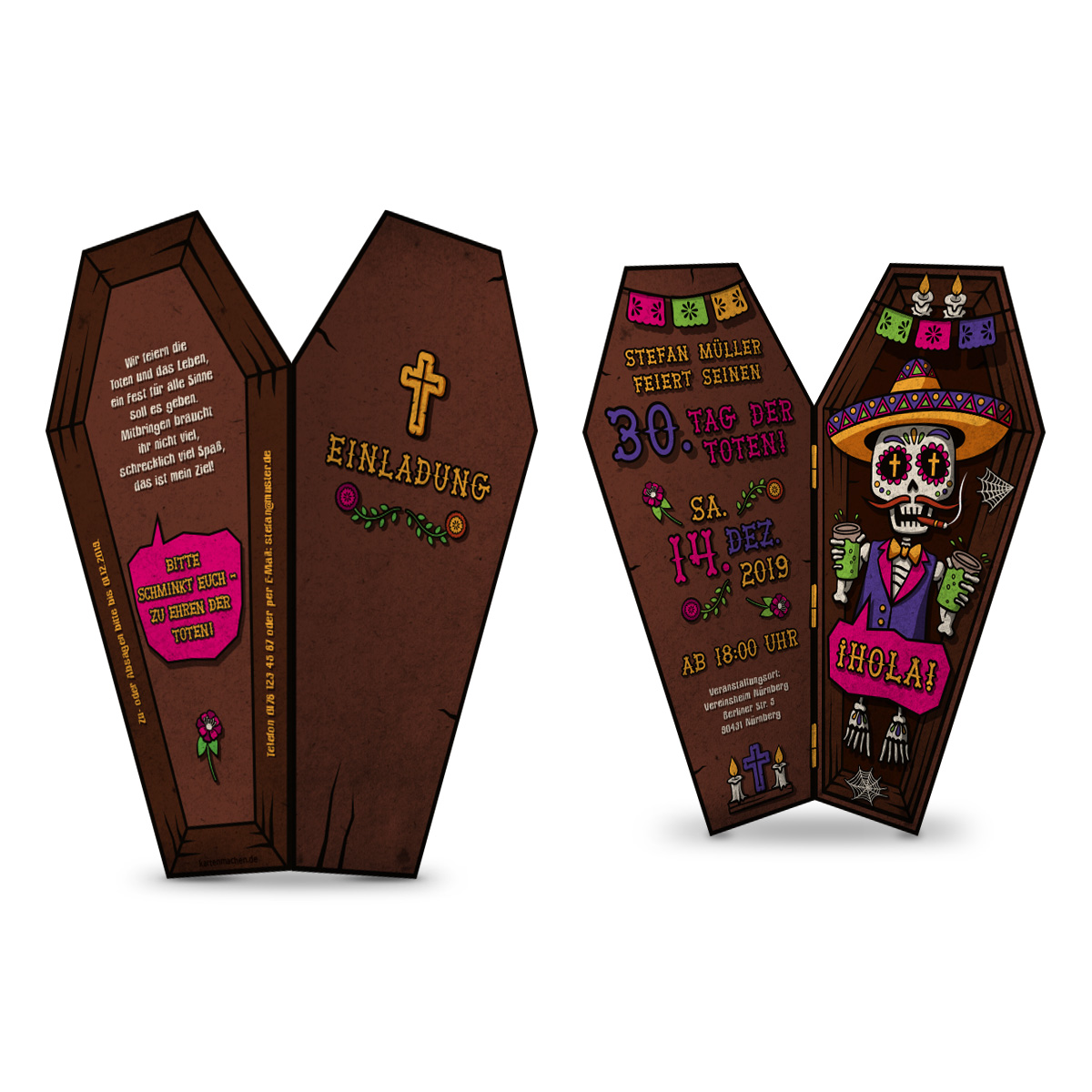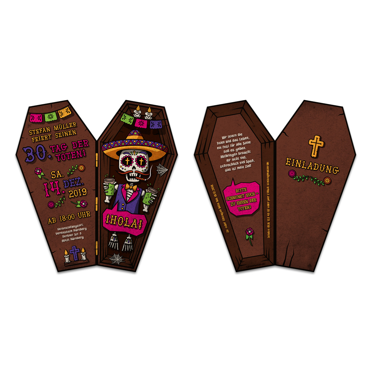 Lasergeschnittene Einladungskarten - Brauner Sarg - Tag der Toten