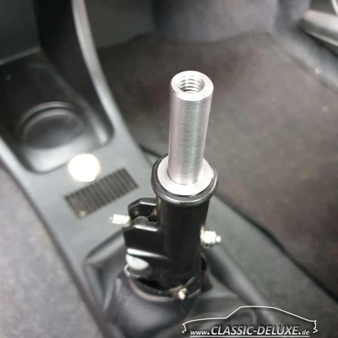 eines Schaltknaufs nach Ihrer Wahl. Durch den Schaft-Durchmesser von nur 12 mm und den M8 Einschraubgewinde lassen sich viel mehr Typen von Schaltknäufen montieren, da die Hersteller von solchen Knäufen unterschiedliche Befestigungssysteme haben. Die Funktion der serienmäßigen Rückwärts-Arretierung bleibt erhalten.