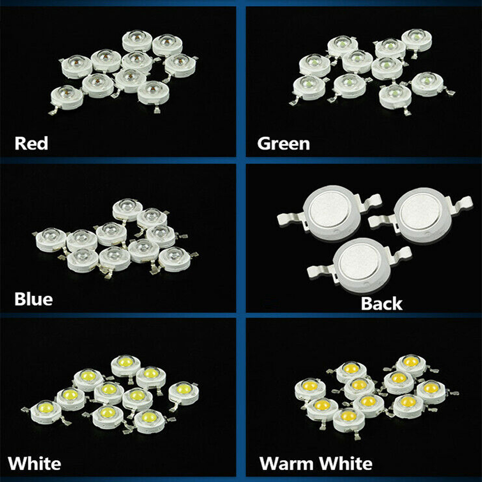50 100pcs Light Beads 3W SMD High Power LED COB Chip Cool/Warm White Red Green