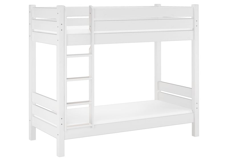 Lit superposé pour adultes en pin massif lasuré blanc, très stable y compris 2 sommiers (sans matelas)