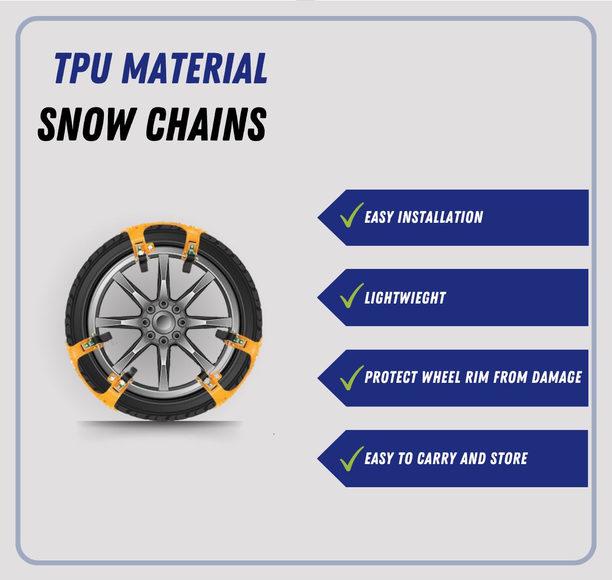 Effectively break down gravity, anti-sideslip, more wear-resistant: Every polyurethane anti-skid nail has a pressure-sharing function. resists abrasion, increase friction, effectively prevents fracture, reduces the wear of the anti-skid chain, and help to eliminate snow, thereby increasing the anti-slip effect, which is much more elastic than similar products.