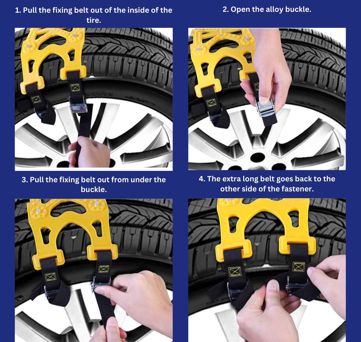 Widened nylon belt with strong anti-wearing force: Using Encrypted weaving method, widening and thickening nylon belt, wear-resistant, high tensile strength, not easy to break, so that the snow chain is better fixed, the snow chain and the tire are Tight fit, safe and secure.