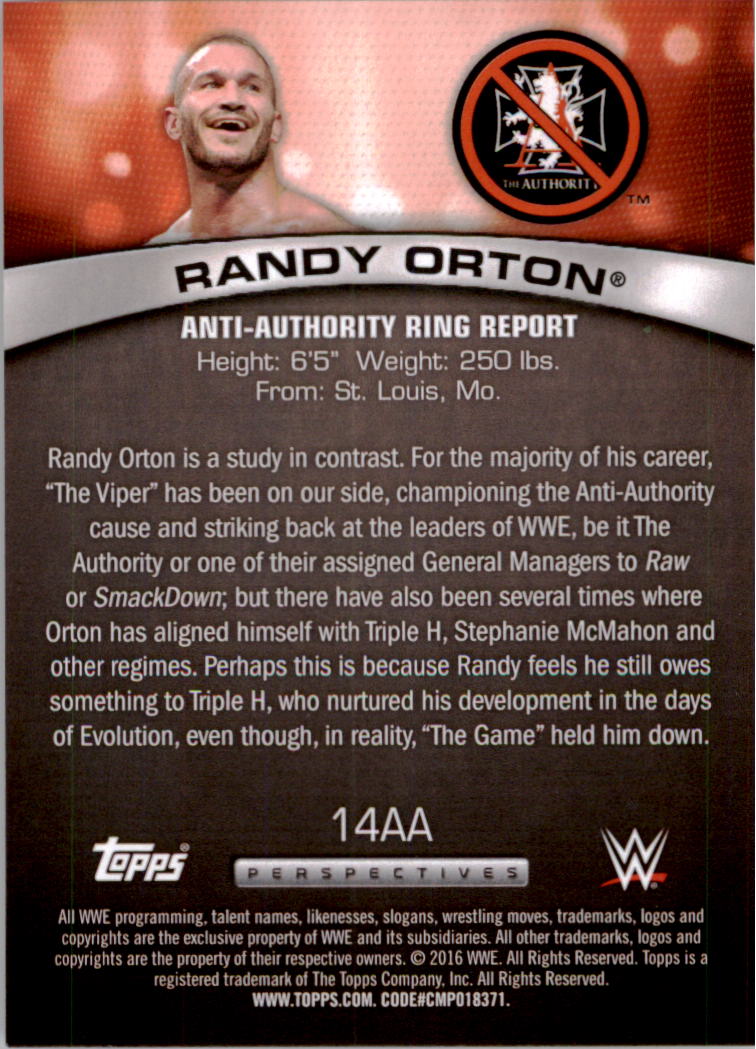 2016 Topps WWE Anti-Authority Perspectives #14AA Randy Orton - NM-MT