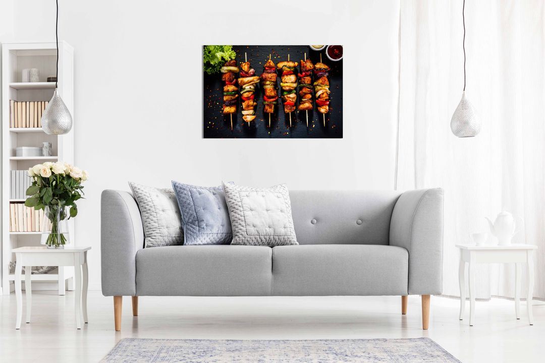 Chicken Skewer Kebab Grill Turkish Restaurant Food Canvas Wall Art Picture Print