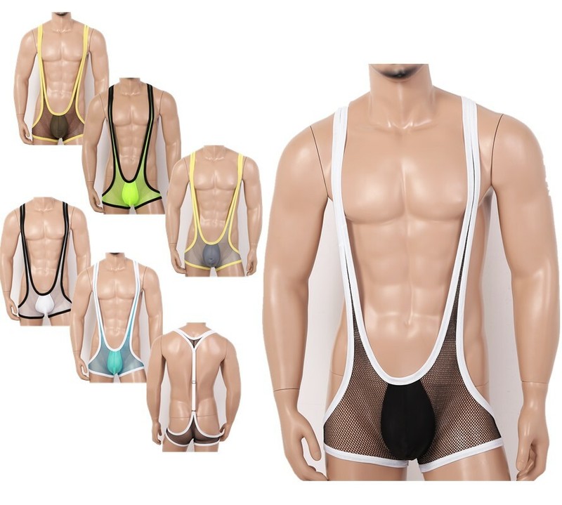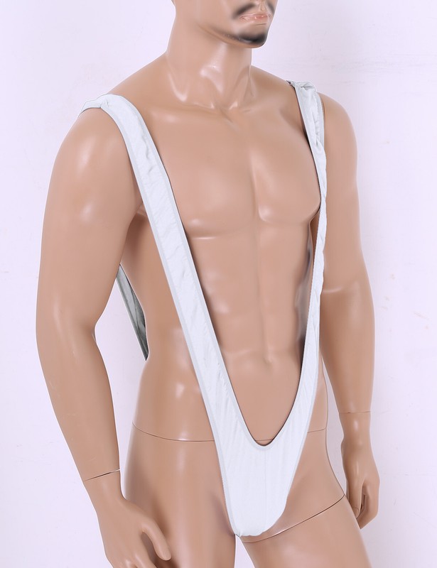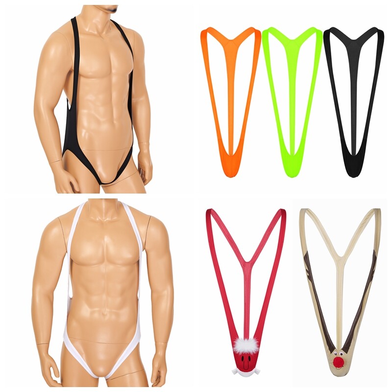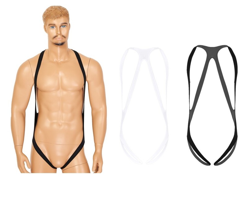 Men’s one-piece mankini thong underwear lingerie suspender bodysuit, one size fits most.