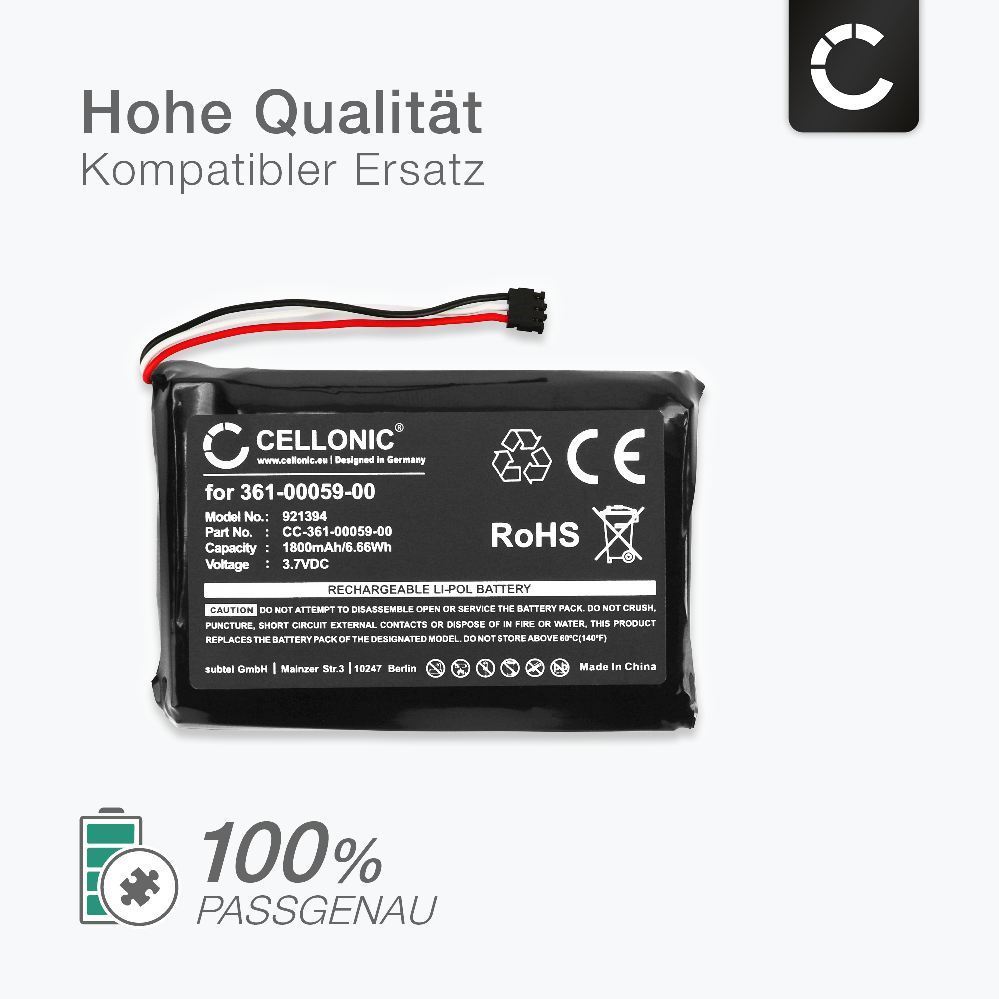 Leistungsstarker 361-00059-00 Akku - Unsere Ersatzakkus bieten eine konstant hohe Leistung, Kraft und Laufzeiten, die denen Ihres Originalakkus entsprechen oder diese sogar übertreffen.