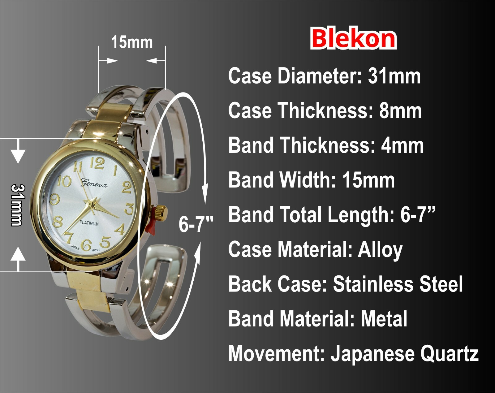 Blekon Collections Japanese Quartz Women's 31mm Case Metal Bangle Cuff Watch