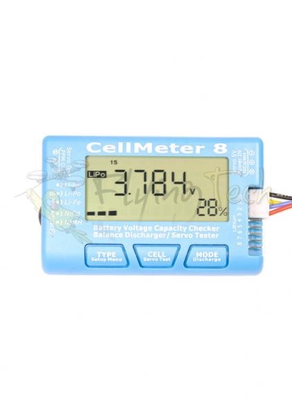 The CellMeter-8 has all of the features of the CellMeter-7, but also adds new features namely a ESC / Servo Tester, Storage Discharge Function and a Backlit Display.
