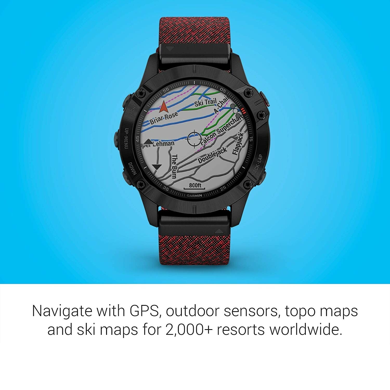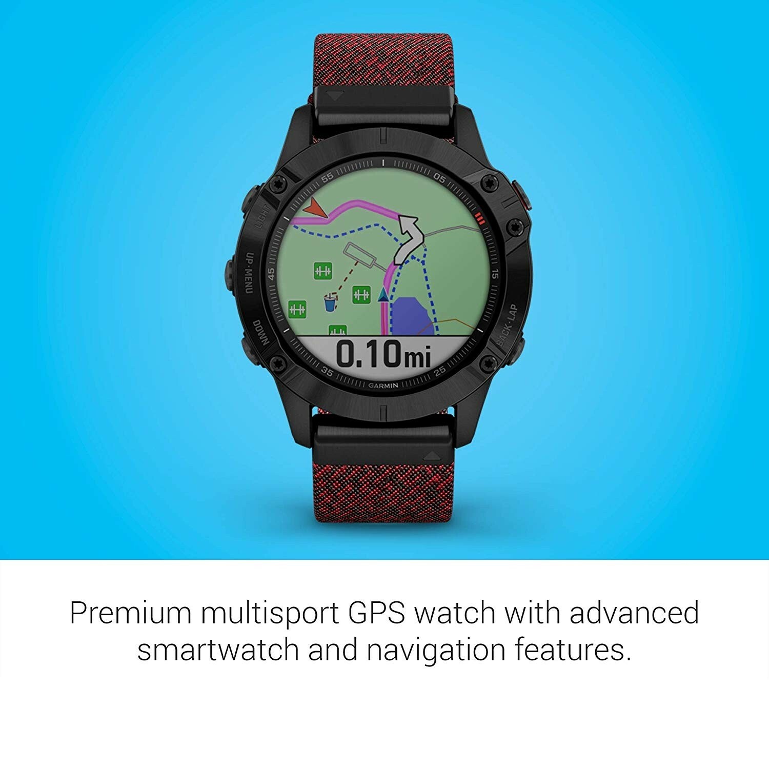 Garmin Fenix 6 Sapphire Mens Red Nylon Band Black Digital Dial Multisport GPS Smart Watch