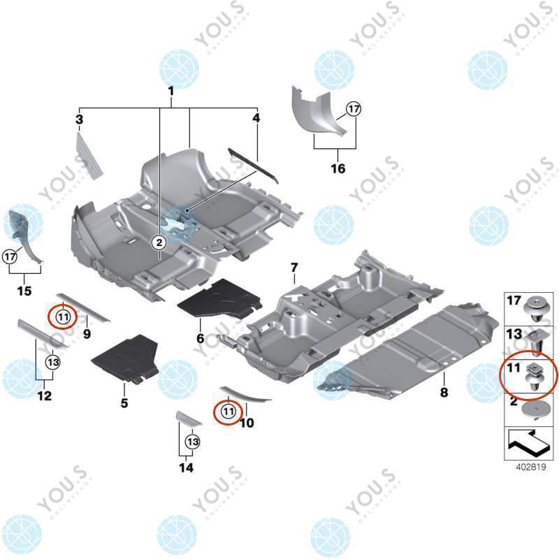 YOU.S Original Einstiegsleiste Befestigungsclip Clips für MINI Mini (F54) (F55) (F56) (F60)