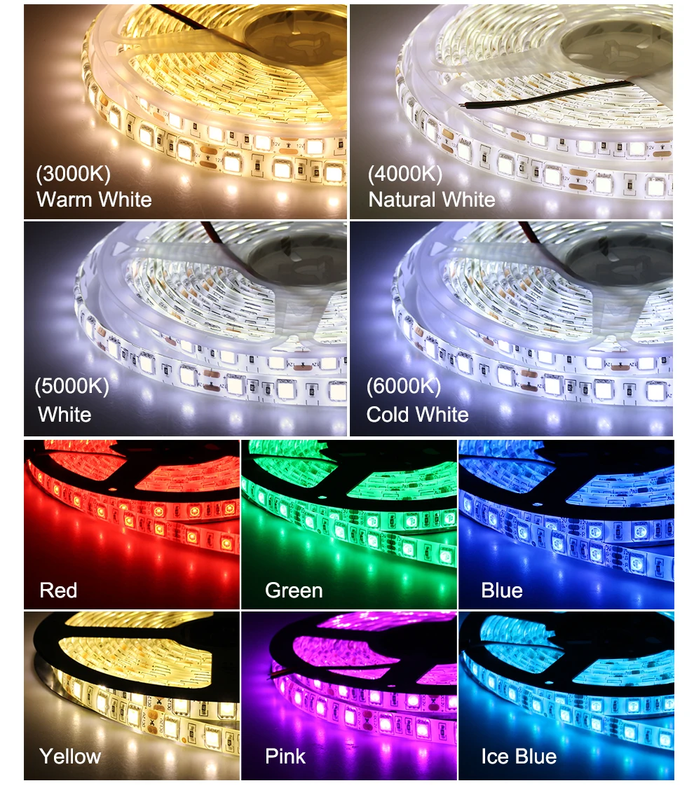 Warm White 3000-3200K / Neutral White 4000-4500K / White 5000-5500K / Cool White 6000-6500K
