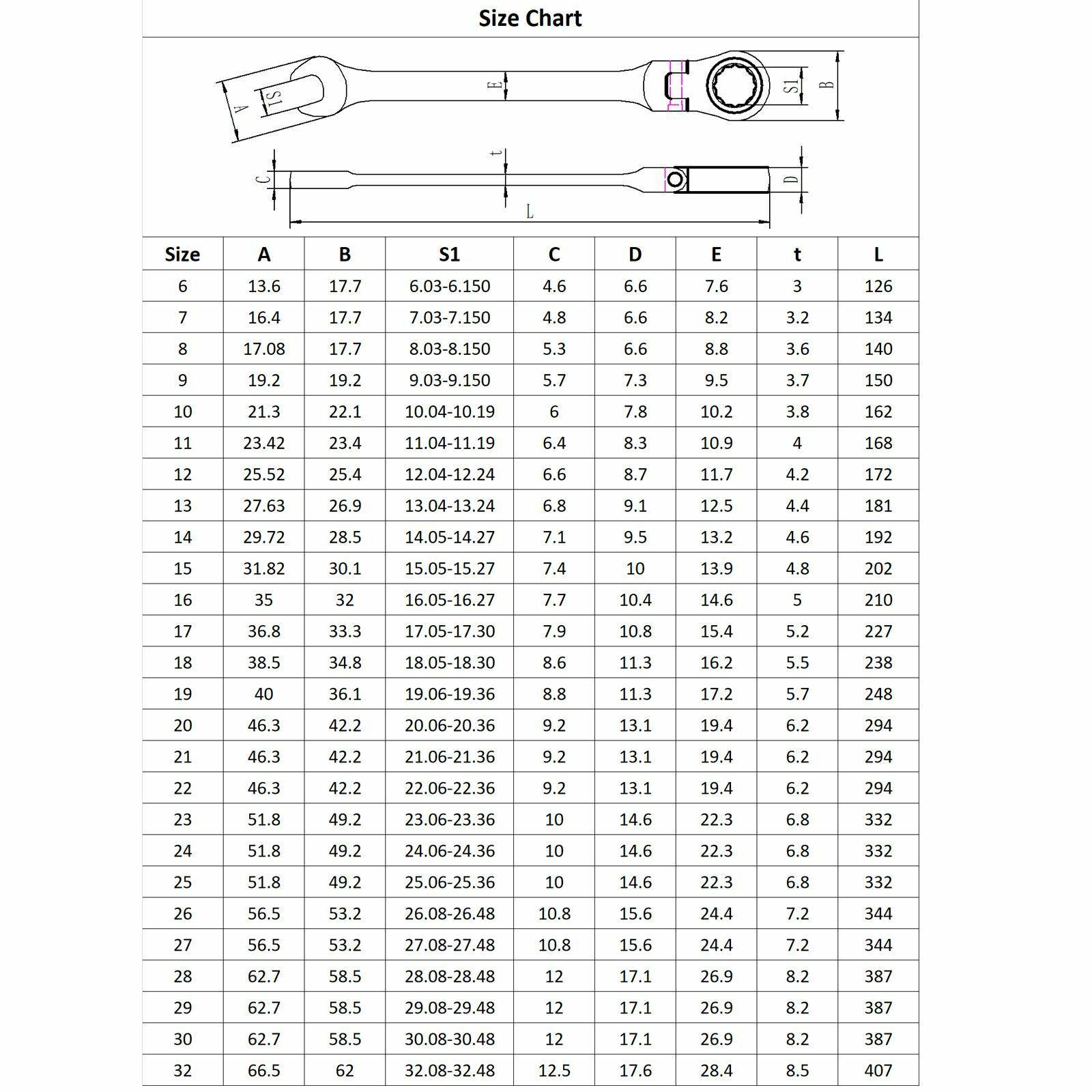 Ratchet Spanner Combi Flexi Metric Flexible 8-32mm Ratchet Wrench Chrome UK
