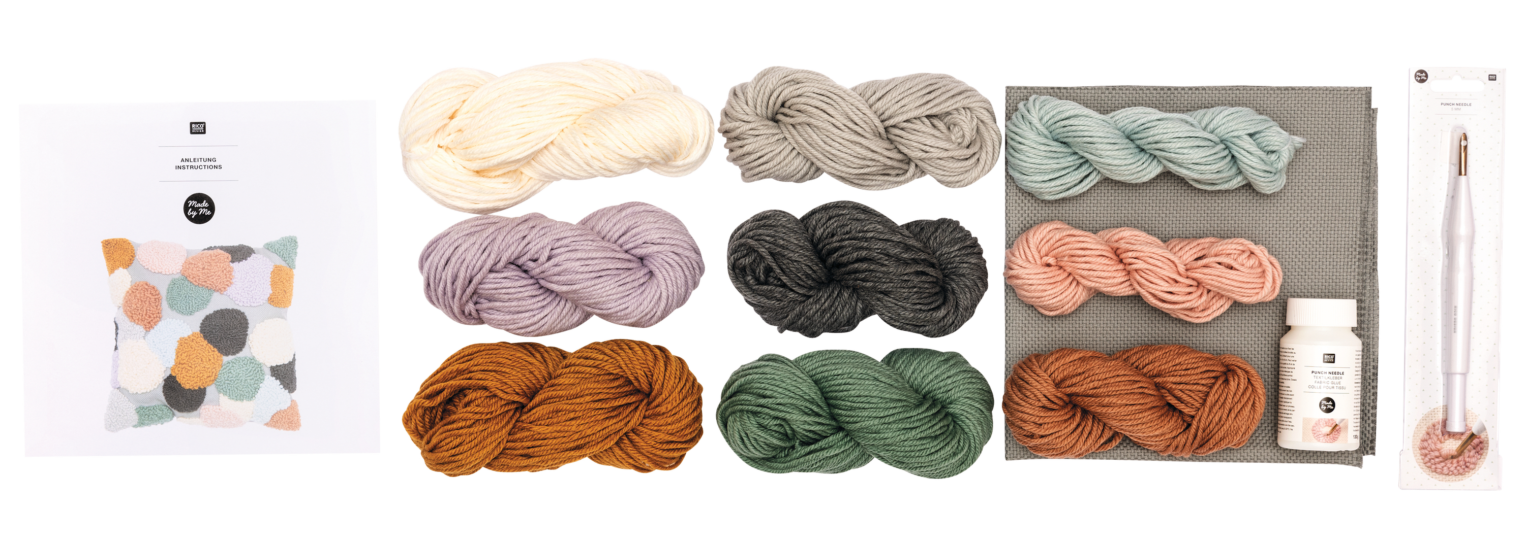 Das tolle Rico Punch Needle Set Kissen mit bunten Punkten beinhaltet alle Materialien für ein ca. 40 x 40 cm großes Kissen. Mit der enthaltenen Anleitung gelingt die Umsetzung spielend leicht.