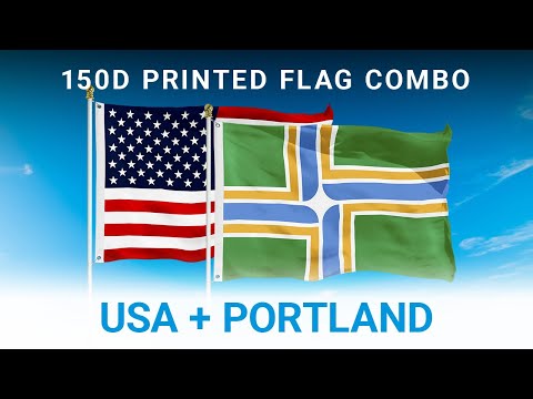 (1) USA American Flag 3x5 Ft 150D Printed Stars Polyester and (1) Portland Flag 3x5 Ft 150D Printed Polyester. The Portland flag represents the city of Portland, Oregon in the US. This combo is perfect for Independence Day, national holidays, special events, parades, everyday display, or as a gift for a loved one! The American flag and the Portland flag are BOTH made from 100% 150 Denier fabric while other market brands are made with less durable 75D. BOTH flags dye-sublimated for clear vivid bright colors. Imported. Flags fly in medium breeze. Fly ends are secured with FOUR rows of lock stitching to prevent ripping and tearing. Heavy duty polyester canvas heading with two strong solid brass grommets for easy hanging and display. Two (2) flags, BOTH large standard size 3x5 feet.